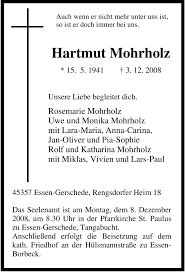 Traueranzeigen Von Hartmut Mohrholz Waz Trauer De